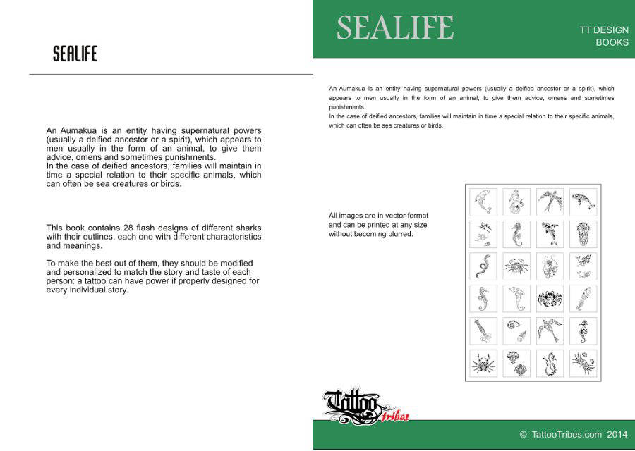 Fourth book of the series, it contains 28 unpublished flash designs of sea creatures and birds with outlines, each one with different characteristics and meanings.